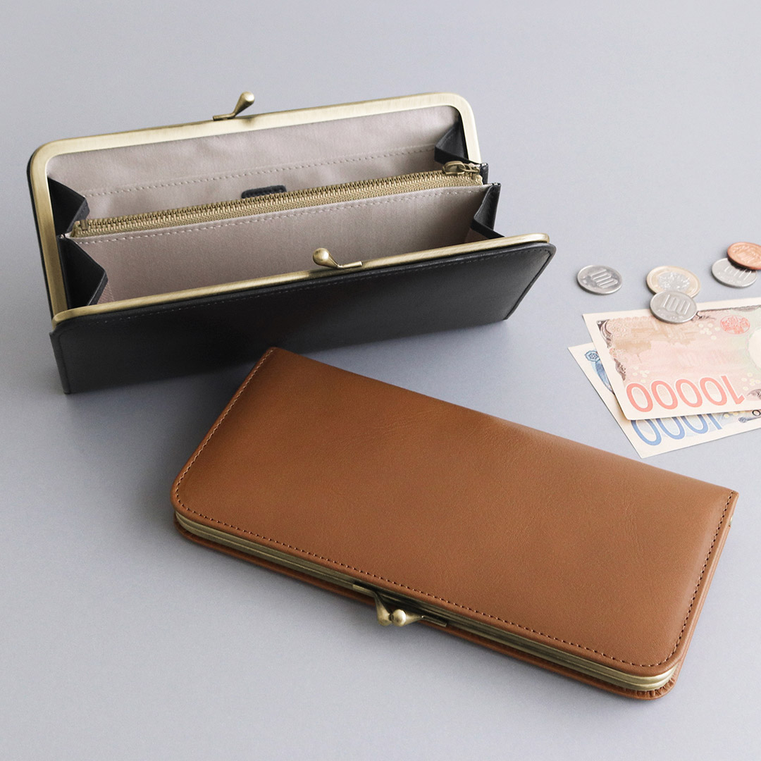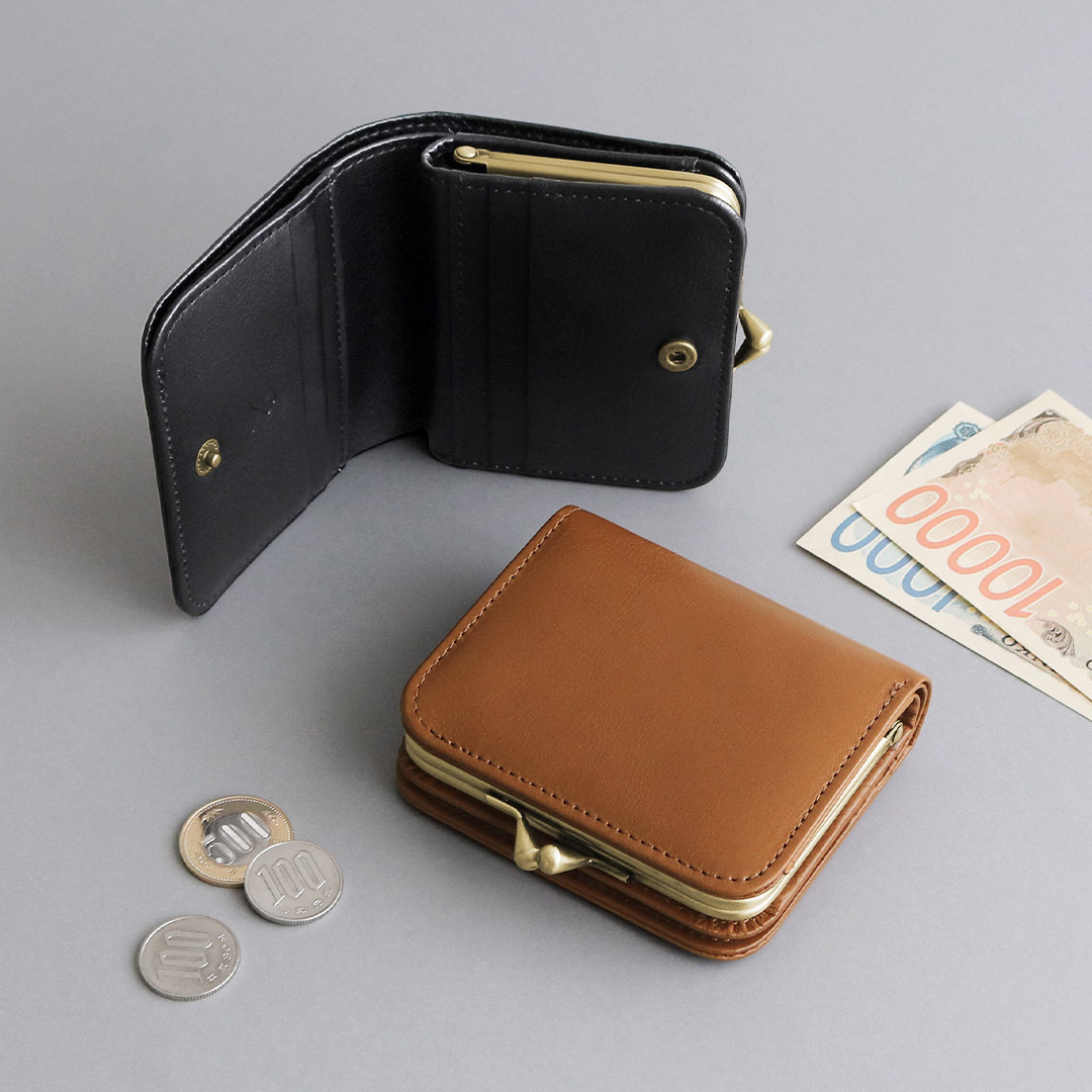 二つ折りがま口コンパクトウォレット ¥17,600 / 二つ折りがま口スクエアウォレット ¥22,000 / がま口ロングウォレット ¥24,200