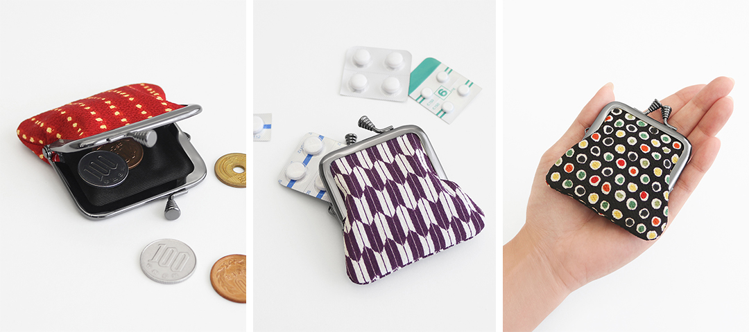 寸ぱちがま口財布より一回り大きく、小銭がたくさん入るミニ財布です。小銭入れとしてはもちろん、お薬や小さなアクセサリーを入れても◎