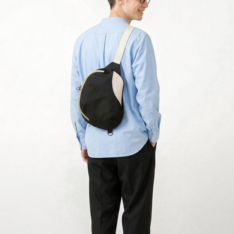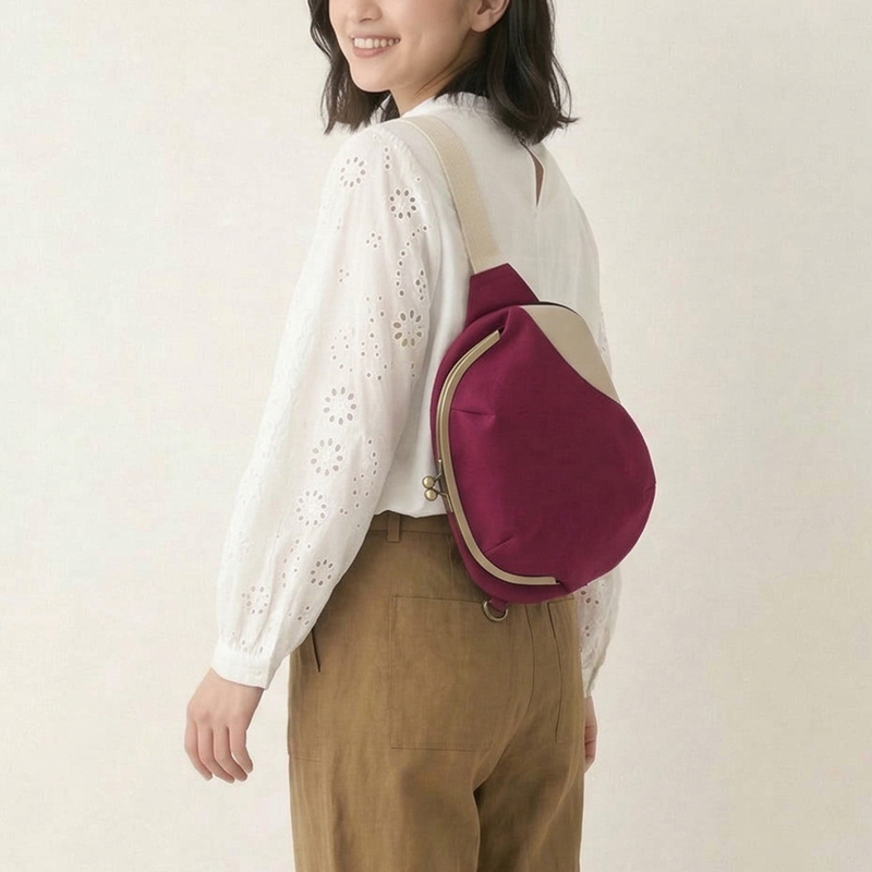 “豆”の形そのままに、大胆かつユニークなアシンメトリーシルエットが魅力の「がま口まめボディバッグ」がリニューアルして登場!