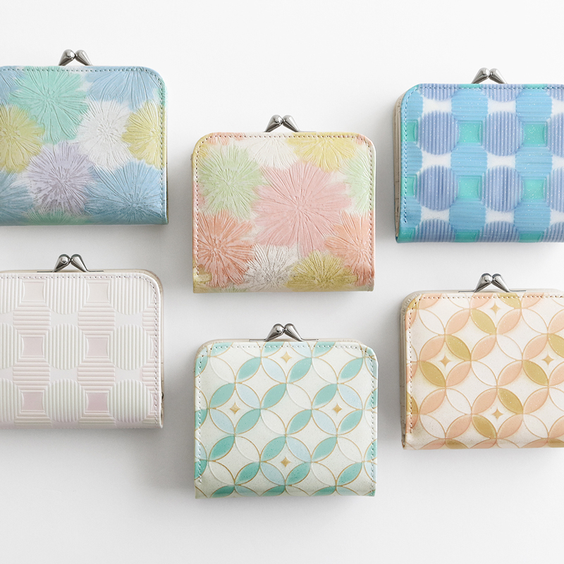 角度で変わる偏光色やラメ入りのエナメル加工、花柄の型押しなど、華やかで魅力的なデザインの6柄展開です。