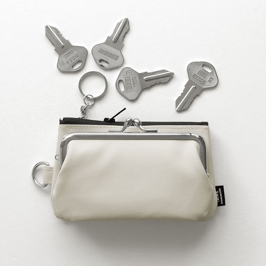 お出かけに必要な物をひとまとめできる「がま口キーコインケース+」。キーリング付きで、パスケースやミニ財布にもおすすめです。