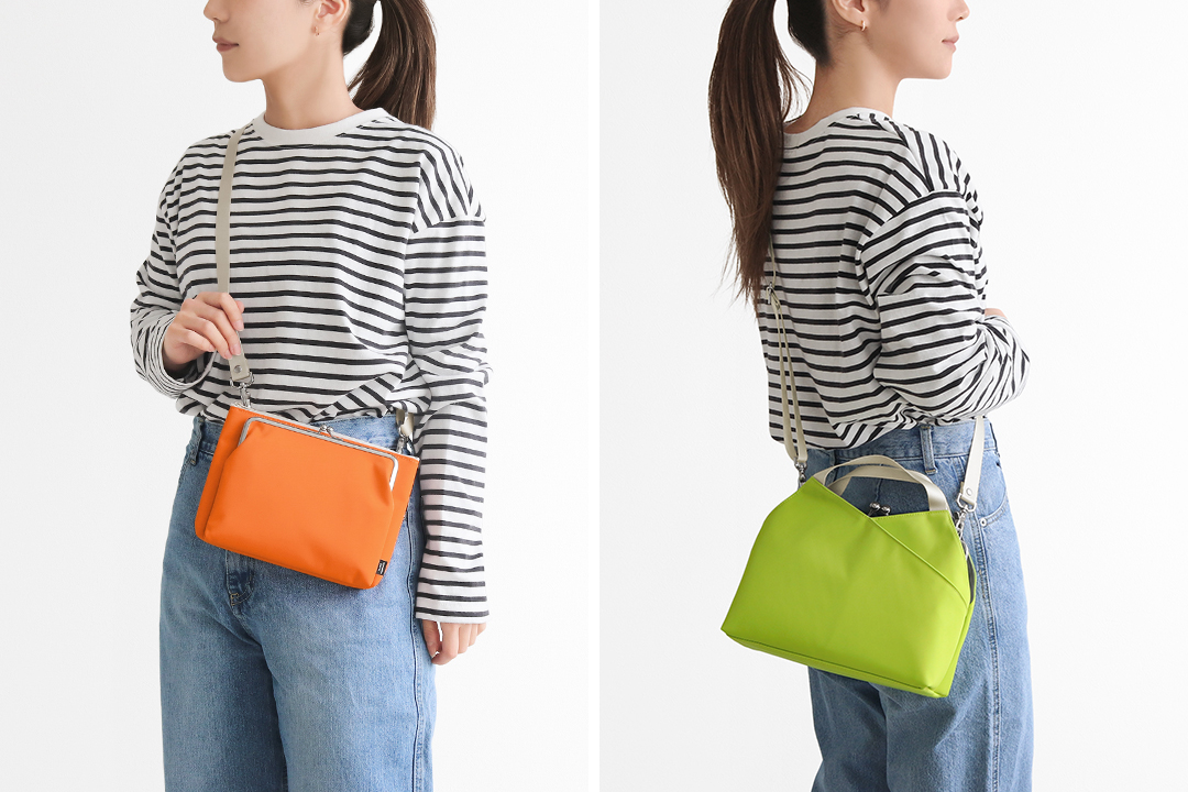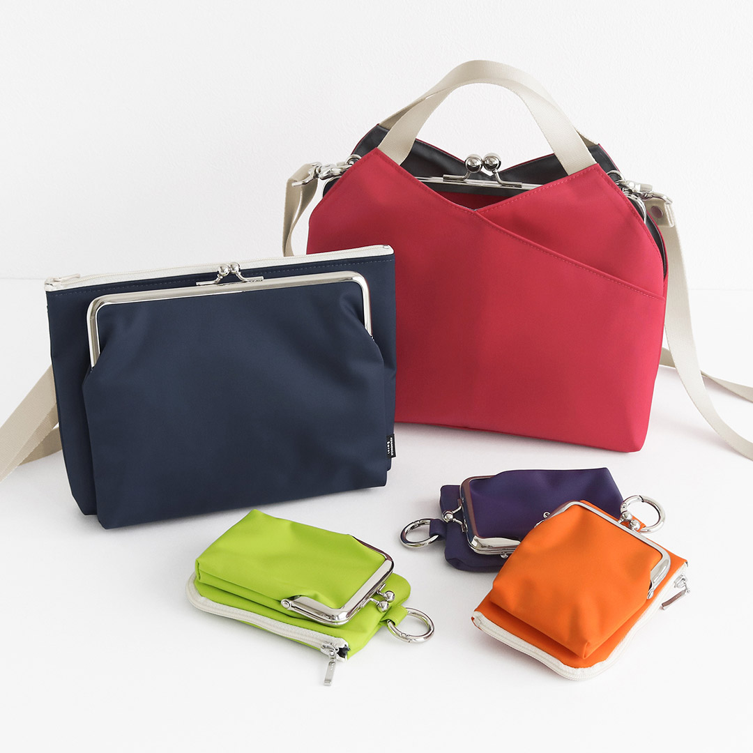縦型がま口キーコインケース ¥5,445 / がま口ポケット付きミニサコッシュ ¥7,480 / がま口レイヤードショルダーバッグ ¥12,100