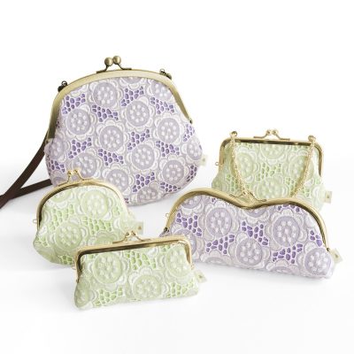 山型がま口メガネケース ¥3,465 / 三枚口財布 ¥3,630 / 4寸がま口切替平ポーチ(マチ有) ¥3,630/ TAWARA型がま口コスメポーチ(中) ¥4,455 / がま口お散歩ポシェット ¥6,490 / がま口フラップ2WAYリュック ¥19,800