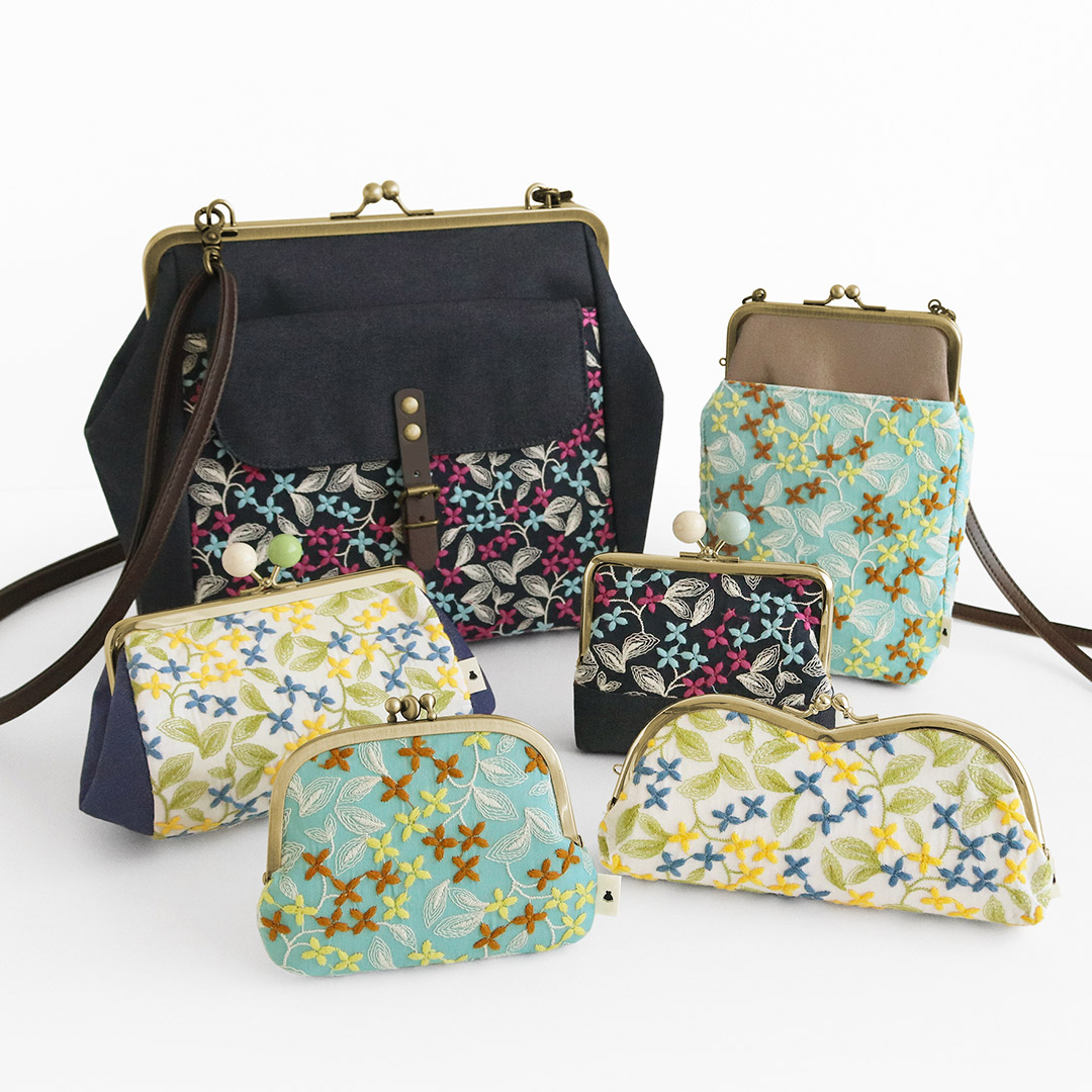 温かみを感じる小花と葉っぱの刺繍を施した生地に、デニム調の生地を合わせた春らしい爽やかな限定シリーズ。使い勝手の良いサイズ感のバッグと小物のラインナップで、春夏のおでかけにぴったり♪ ギフトにもおすすめです。