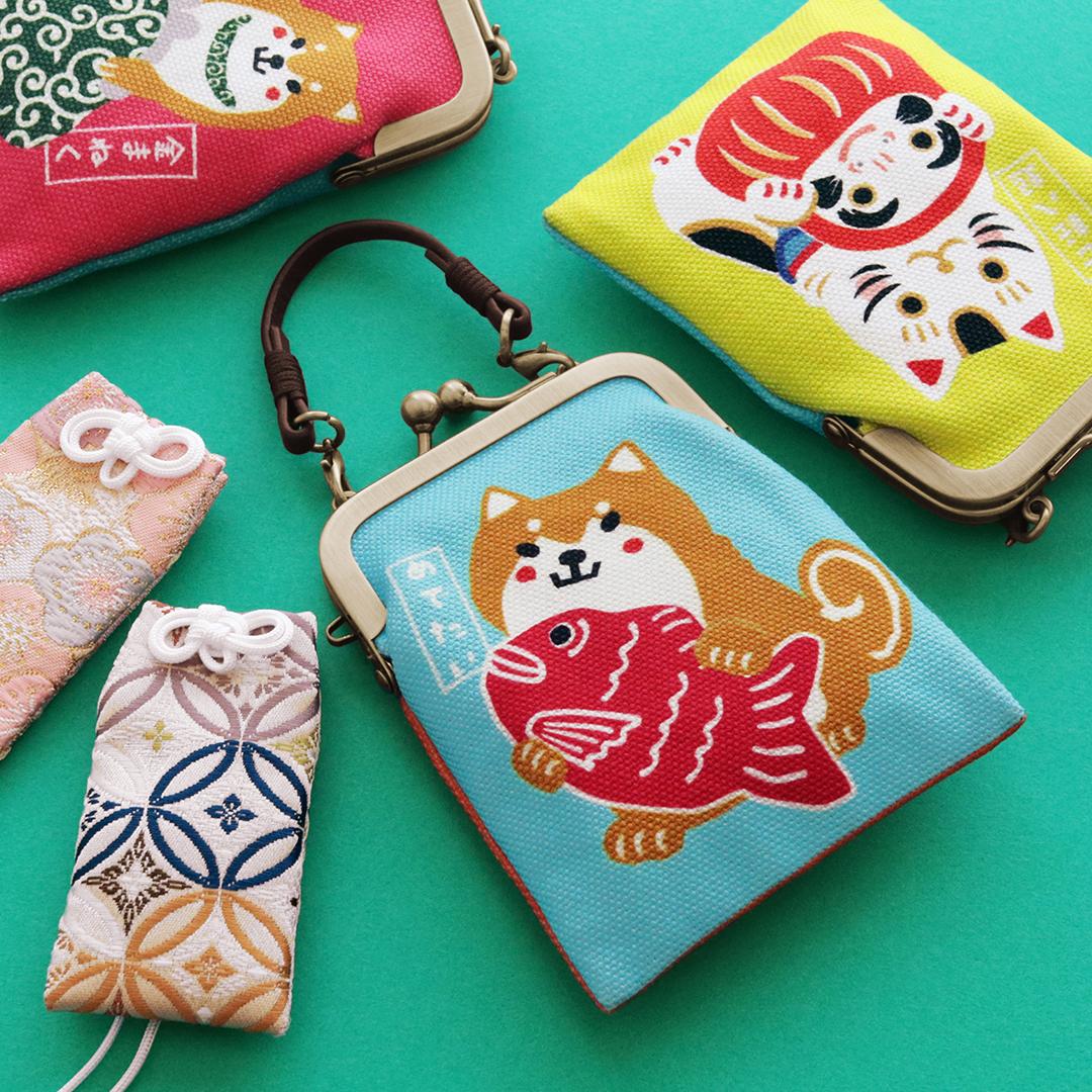 バッグの持ち手に取り付けられる、ユニークで便利なお守りケース。大切なお守り入れとしてはもちろん、ミニ財布や小物入れとしても使えます。がま口を持った招き猫が人気の“がまにゃんこ”に鯛とだるまバージョンが加わった「にゃんこーズ」と、柴犬をモチーフにした「わんこーズ」で各3柄展開です。