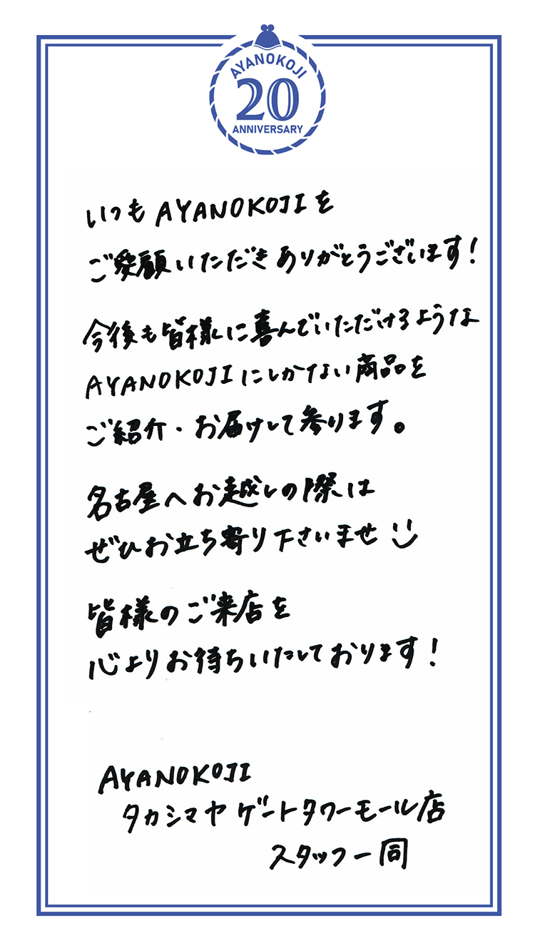 愛知・名古屋に「AYANOKOJI タカシマヤ ゲートタワーモール店」を開設 -