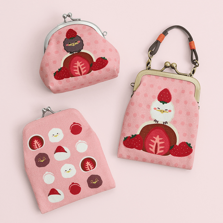 ガマグチヨタカ&ヨタまると、おいしそうないちご大福の組み合わせがかわいいデザインです。