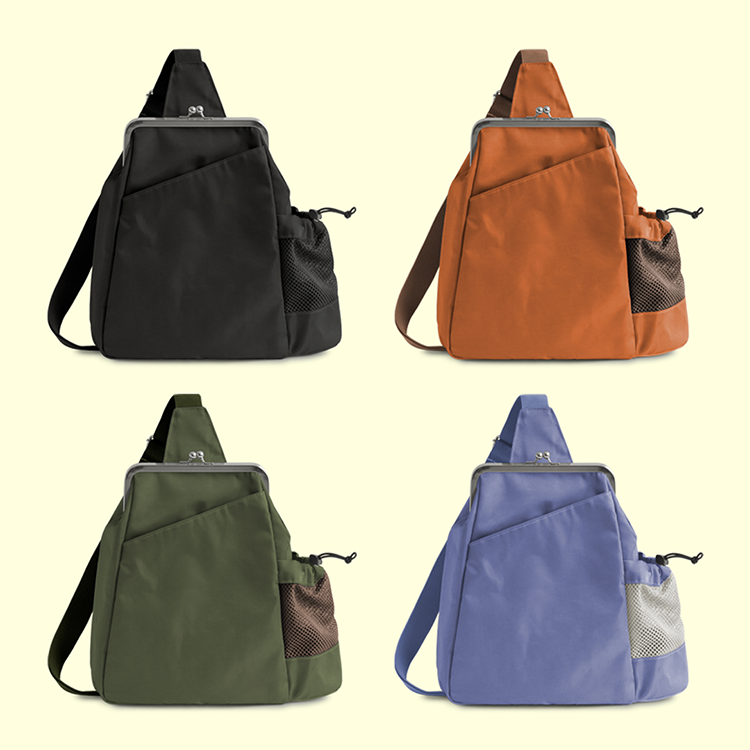 その名の通り、縁起の良い「末広」にちなんだユニークなフォルムが特徴のボディバッグです。 -
