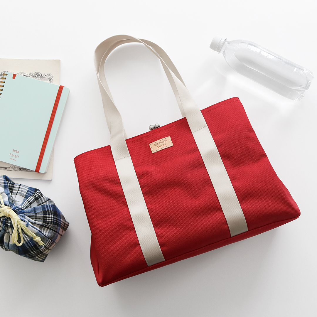 こちらも初展開の「がま口スクエアトートバッグ(M)」。外ポケットにはA4サイズが入る、通勤・通学にもおすすめのシンプルなトートバッグです。